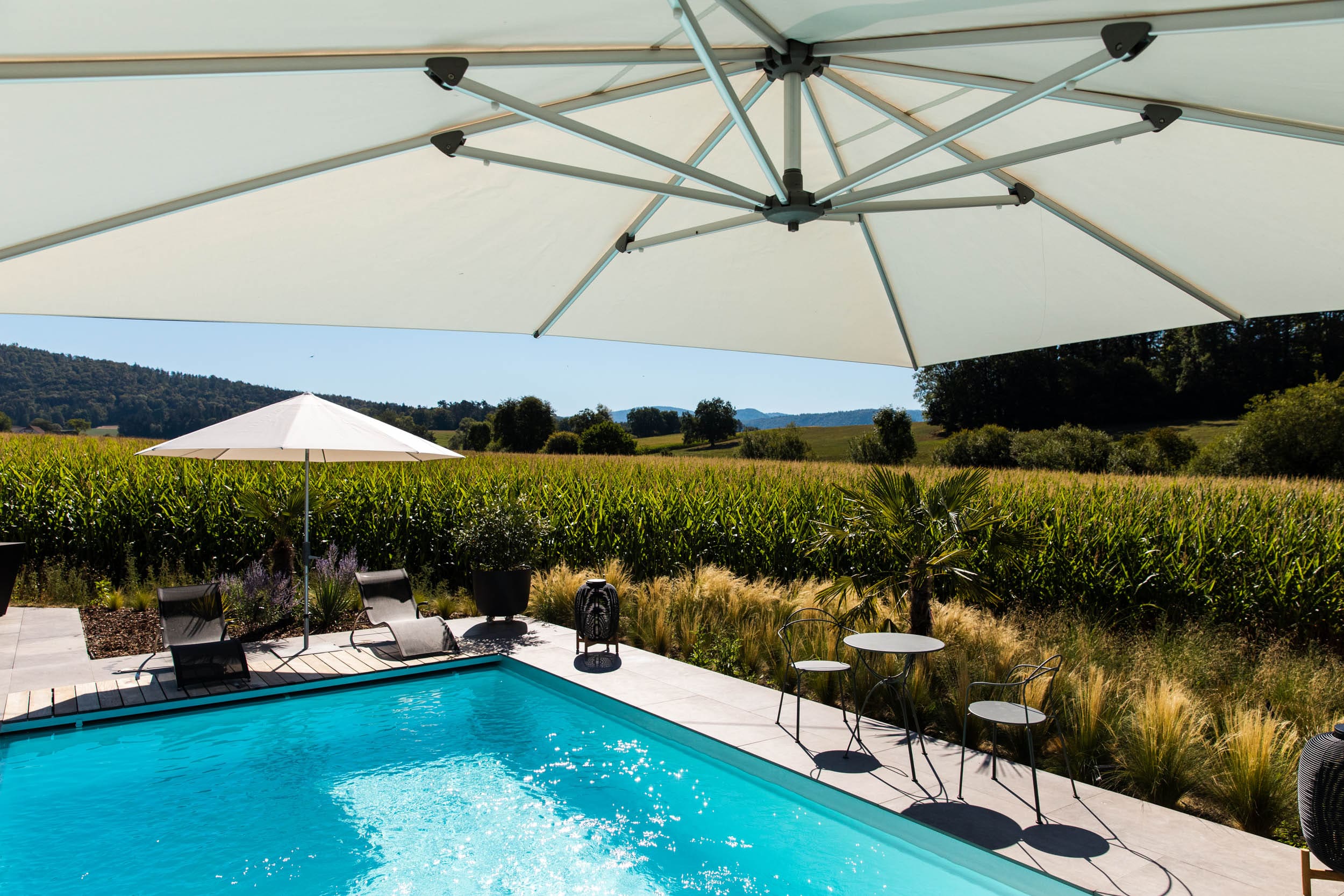 Des parasols à mat central ou déporté,