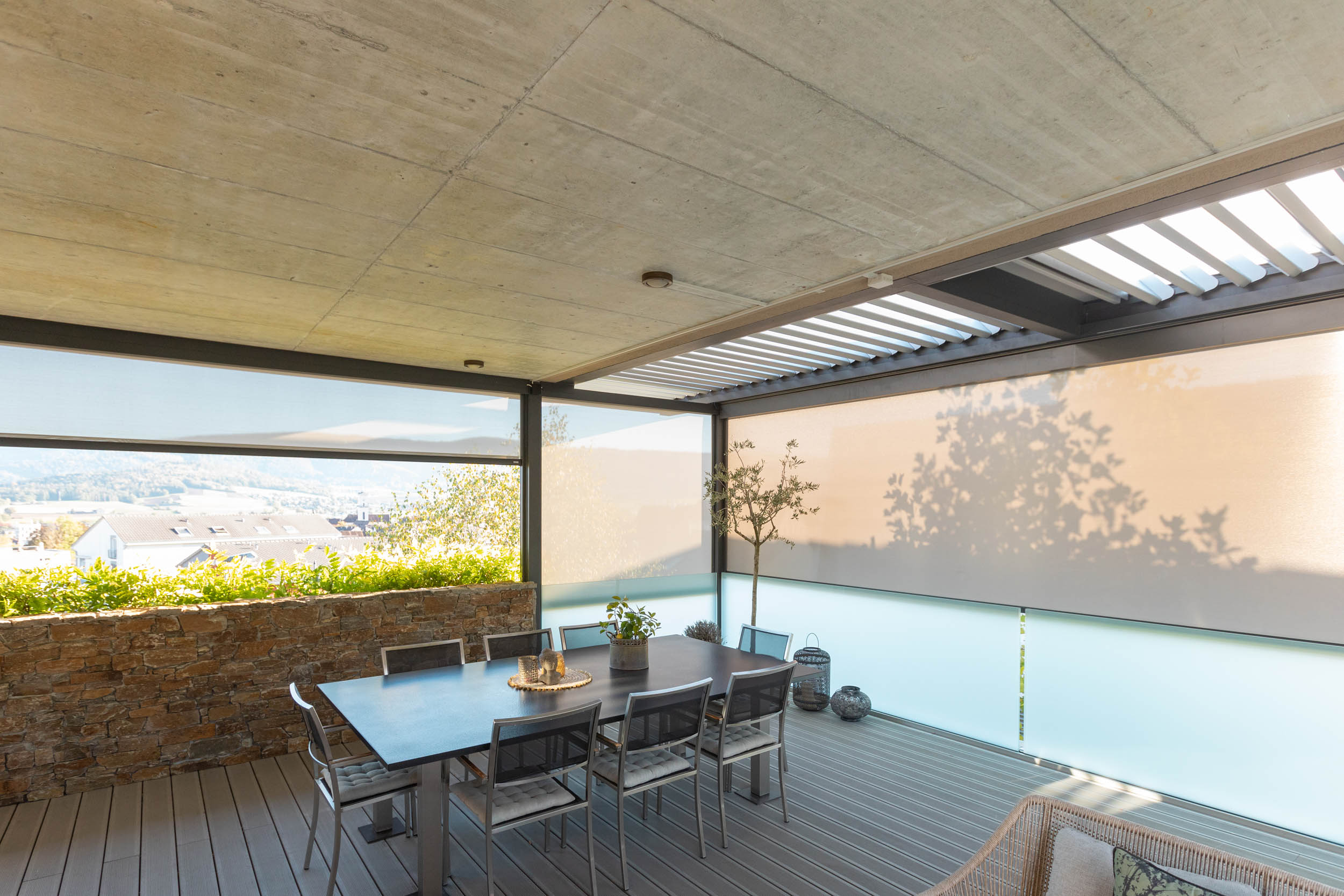 Pergola bioclimatique intégrée,
